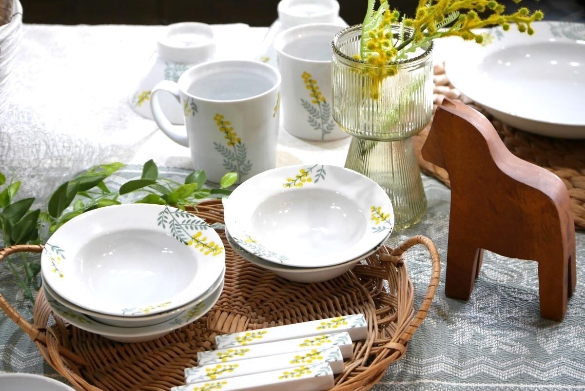 小さな黄色の花が可愛らしいミモザはブーケや贈り物に使われることが多く、特に女性に人気です。 「秘密の恋」「思いやり」など様々な花言葉を持っています。 そんな人気のミモザの食器があったらいいな♡と思い製作いたしました。 黄色とグリーンのカラーで食卓を明るく彩ってくれるミモザシリーズです。 箸置きとして、またスプーンやフォークレストとしてお使いいただけます。 色はモニターやブラウザなどによって、実際の物と異なる場合がございます。1点ずつ手作りのため、サイズが多少異なる場合がございます。また、風合いや表情が異なったり、色ムラがある場合ございます。 釉薬の性質上、ムラや表面に小さな黒点やピンホール(小さな穴)がありますが、商品の味としてお楽しみください。 ※カトラリーレスト単品の販売となります。マグカップやプレートはつきません。 ==================== 電子レンジ○ 食洗機○ サイズ:10.4cm×1.7cm) 高さ1.3cm =================== 波佐見焼 和山 WAZAN